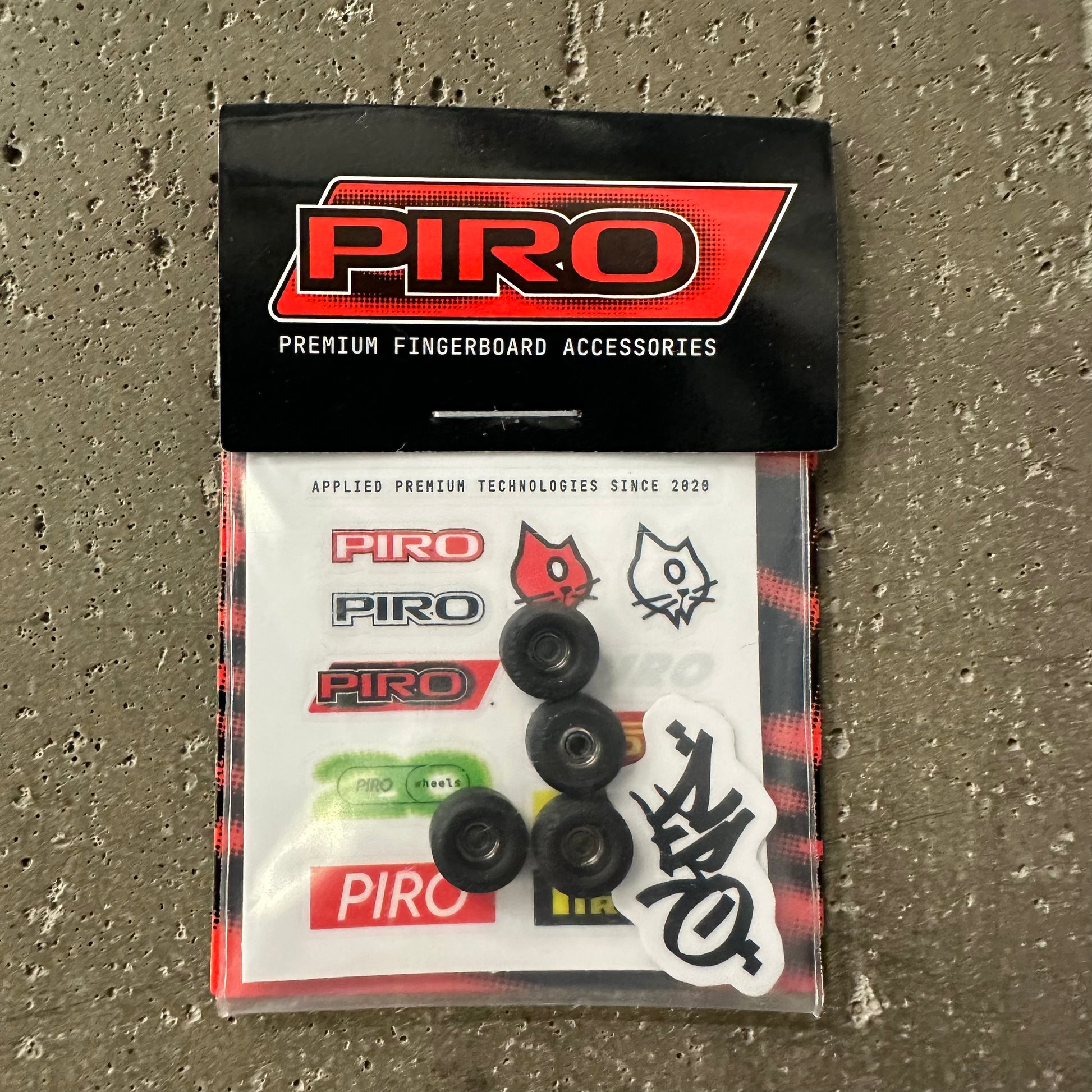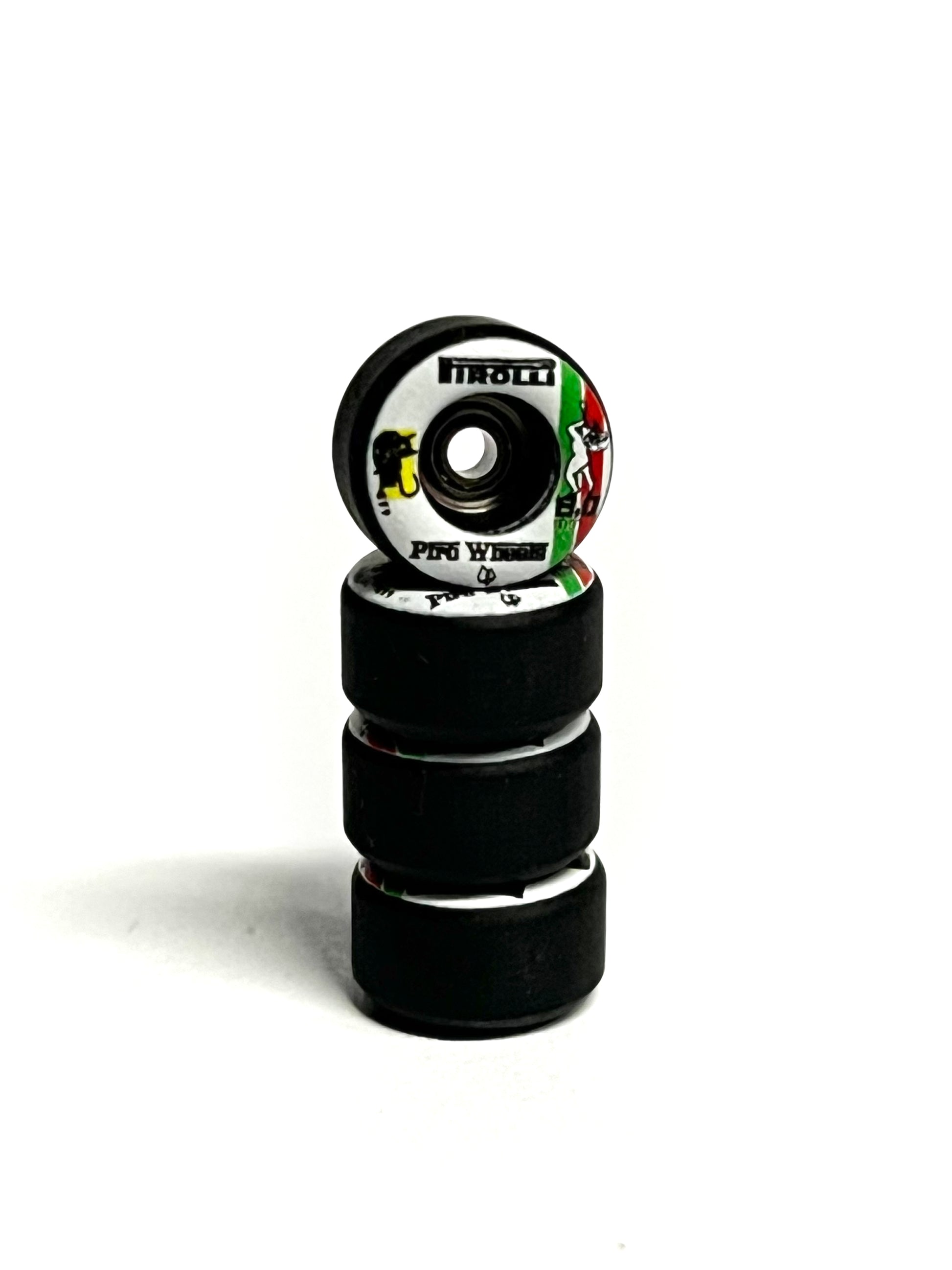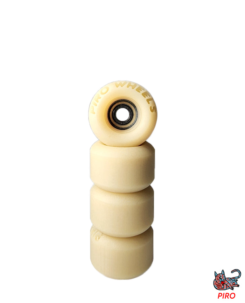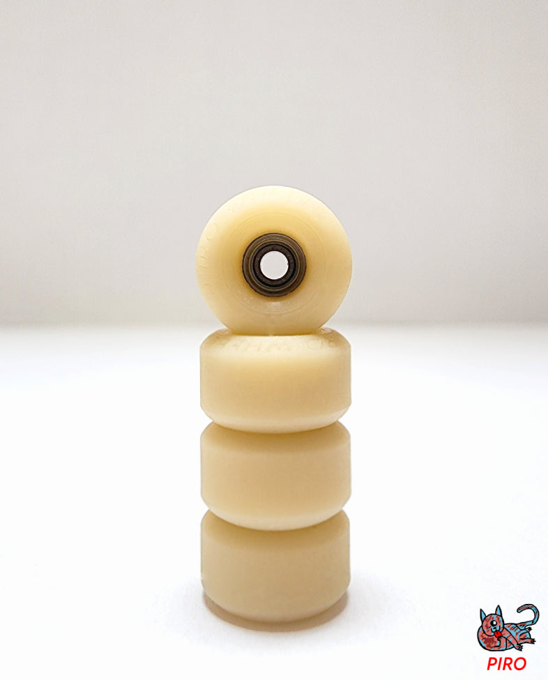 Piro from Toronto Canada are making high performance urethane fingerboard wheels. The signature single locked bearing wheels got a very realistic look and the perfect amount of grip and squeak with the hardness of 65D. All sets are from their new P3 formula performance series.